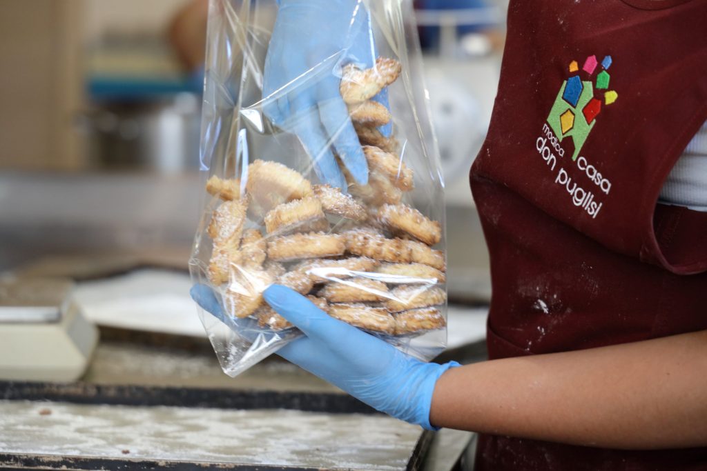 Mevrouw Lina Lemmolo, door de moeders liefkozend “Mamma Lina” genoemd vanwege haar vermogen om de kunst van het maken van chocolade en banket te combineren met warmte en geborgenheid, startte de opleiding voor banketbakkers voor de moeders van Casa Don Puglisi. Trots op de heerlijke delicatessen riep ze graag: “Onze bakkerij is een plek waar het einde goed is en het product nog beter.”